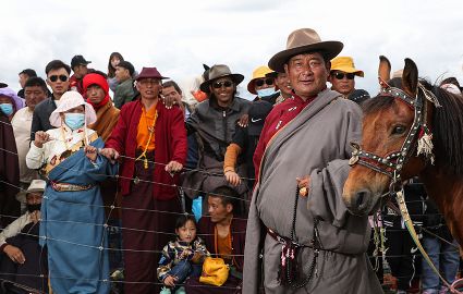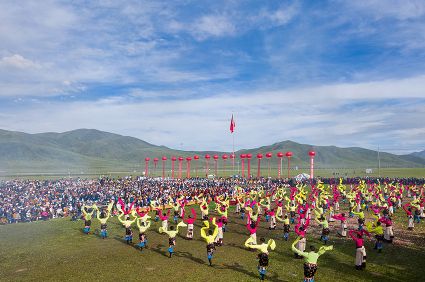 8月6日至8日,2020四川甘孜山地文化旅游節(jié)系列活動之一的色達金馬文化節(jié)在色達縣扎青塘草原舉辦。當?shù)厝罕娚碇?jié)日盛裝載歌載舞、歡聚一堂,文藝表演、賽馬、傳統(tǒng)藏族民俗體育比賽、傳統(tǒng)服飾表演、民間藝術和非遺展演等活動精彩紛呈。