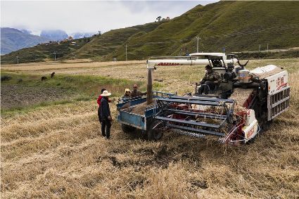 每年9月初,都是甘孜縣青稞收獲的季節(jié)。今年的秋收季已經開始,甘孜縣甘孜鎮(zhèn)斯俄片區(qū)的村民正忙著收割青稞。如今的雪域高原,農業(yè)生產已經基本告別人力耕作時代,實現了機械化耕作。今年甘孜縣的青稞長勢良好,有望成為又一個豐收年。