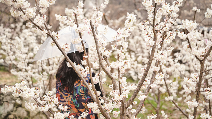 在冷磧鎮(zhèn)杵坭村,一場(chǎng)新雨過(guò)后,空氣中混雜著泥土與櫻桃花的芬芳,花朵們正迎春綻放,一簇簇、一串串,密密匝匝地綴滿枝頭,散發(fā)出沁人心脾的花香,蜜蜂飛舞在櫻桃花樹(shù)間,為一個(gè)月之后的豐收而忙碌。沿著觀光大道,綿延數(shù)公里的櫻桃花吸引了不少游客前來(lái)游玩打卡。