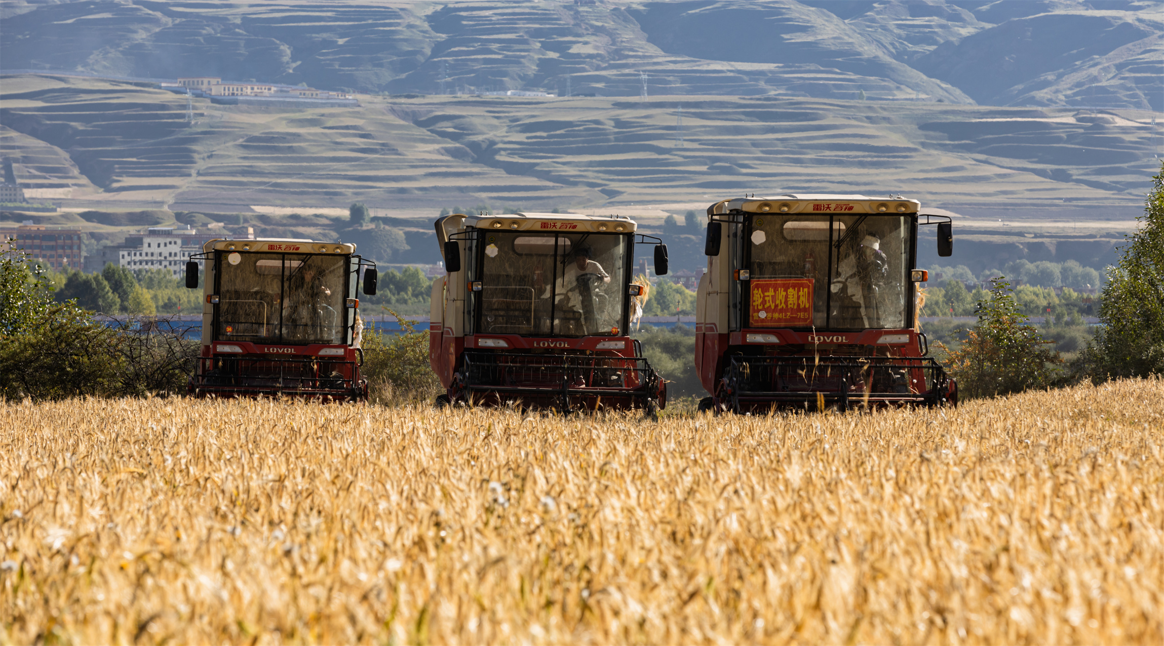 金秋時(shí)節(jié),我州處處洋溢著豐收的喜悅。連日來(lái),我州各縣(市)紛紛進(jìn)入秋收時(shí)段,金色田野上,成熟的青稞、小麥等農(nóng)作物隨風(fēng)搖曳,大型聯(lián)合收割機(jī)來(lái)回穿梭,轟鳴聲奏響秋收樂(lè)章,農(nóng)民們忙碌的身影與現(xiàn)代化的農(nóng)業(yè)機(jī)械共同繪就一幅生機(jī)勃勃的秋收畫(huà)卷。