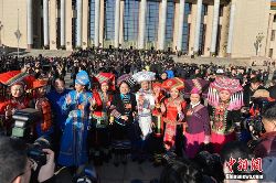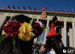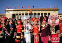 3月5日,第十二屆全國人民代表大會(huì)第二次會(huì)議在北京人民大會(huì)堂開幕。云南少數(shù)民族代表在進(jìn)入會(huì)場前合影留念。中新社發(fā) 駱云飛 攝