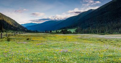 玉科草原面積大而平坦,間以森林,十分迷人,是極為罕見的天然畫卷。號稱“高原花園”的玉科草原上,矗立著一些保存完好的古石雕,散布著多處宜身的溫泉,點綴著幾個不大的高山湖泊。