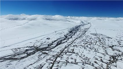 陽春三月將至,然而在這座高原小城卻由于冬季的眷戀仍然身著秋冬混搭裝。三月下雪在石渠并不少見,一場(chǎng)大雪飄然灑下,給扎溪卡草原披上與眾不同的銀裝。雪后艷陽,冰雪匆匆消釋,旭日、夕陽斜映下,放眼一片金燦燦的黃,仿佛一夜回到豐收的秋。