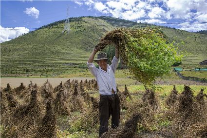 康定市姑咱鎮(zhèn)達(dá)杠村村民李翠軍一邊采摘著蘋果,一邊喜悅地告訴記者,達(dá)杠所產(chǎn)的蘋果個(gè)頭大、色澤好、吃味好、耐儲(chǔ)藏,到目前,全村蘋果種植面積800多畝,去年蘋果產(chǎn)量160萬斤,今年雨水好,蘋果產(chǎn)量將猛增到200萬斤以上。目前,村子里蘋果種植大戶家庭年收入過10萬元的就有20多戶??刀ㄊ袑⑦_(dá)杠村打造成川藏觀光農(nóng)業(yè)第一村。按照規(guī)劃,村里會(huì)進(jìn)一步擴(kuò)大蘋果種植面積,以蘋果利用為核心,發(fā)展“春賞花、夏攝影、秋摘果、冬體驗(yàn)”四季觀光農(nóng)業(yè)產(chǎn)業(yè)。五谷豐登六畜興旺,甘孜高原共慶豐收。農(nóng)民豐收節(jié),它既是億萬農(nóng)民慶豐收、曬豐收的節(jié)日,也是全社會(huì)享豐收、助增收的節(jié)日;既寄托著農(nóng)民的追求、農(nóng)民的希冀,也承載著全體中華兒女的深情與追憶;中國農(nóng)民豐收節(jié),農(nóng)牧民收獲的不只是甜蜜蜜的果實(shí),鼓起的不只是沉甸甸的荷包,更是滿滿的榮譽(yù)感、幸福感、獲得感!