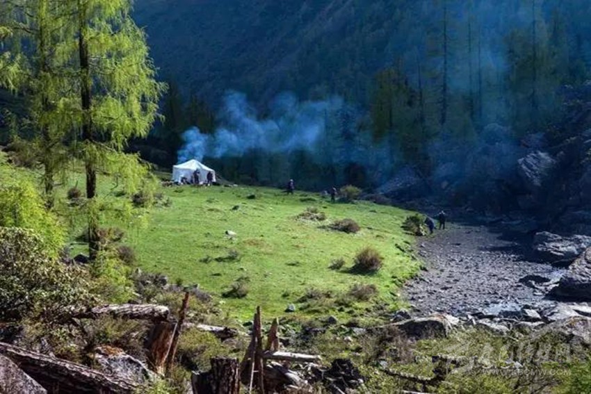 “甲依拉措”位于道孚玉科鄉(xiāng)七美村。駕車從道孚出發(fā)走一百多公里鄉(xiāng)村土路,到村上后,騎馬一個半小時到“甲依拉措”溝口宿營地。