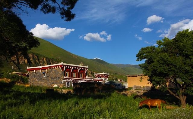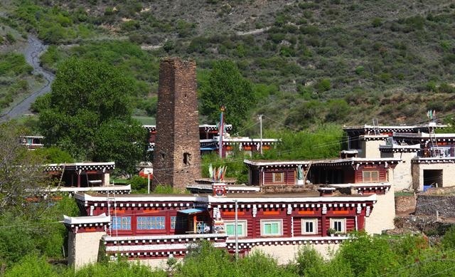 走進(jìn)這座別致的高原城市,首先呈現(xiàn)在你面前的就是那鱗次櫛比的藏式民居。這些民居外表主要由棕白兩色構(gòu)成,白色的屋頂,白色的主墻,木結(jié)構(gòu)處多用棕色顏料染涂,其間配以紅色、藍(lán)色圖案,在藍(lán)天、白云、青山、綠水的輝映下,仿佛幻化成妙不可言的積木圖案。這里的民居修得美輪美奐。如果不是親眼見(jiàn)到,還一定會(huì)認(rèn)為這令人眩目的房屋是夢(mèng)境。這就是道孚民居,被譽(yù)為散落人間的仙境皇宮。