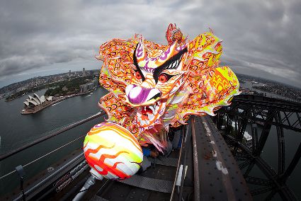 中國傳統(tǒng)舞龍亮相悉尼海港大橋