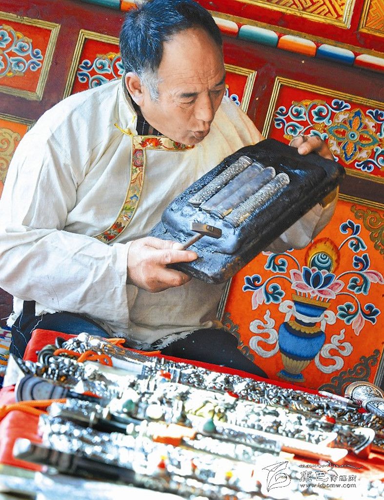實(shí)際上,河坡藏族手工藝的歷史,可以追溯到1300多年前。自從松贊干布時(shí)期,藏王屯兵康區(qū),不斷向東南內(nèi)地?cái)U(kuò)張起,這里就開始了刀槍、戈矛、弓箭等兵器的鑄造。河坡工匠利用當(dāng)?shù)罔F礦土法煉鐵,作為鑄造兵器的原材料。附近的熱加鄉(xiāng)阿仁溝,如今還能見到當(dāng)時(shí)的煉鐵遺跡。