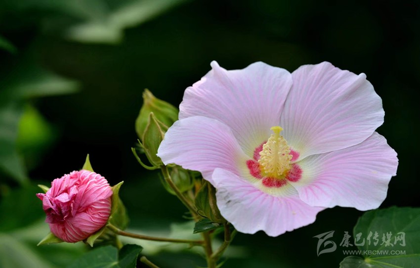秋風(fēng)伴著秋雨,沁出絲絲涼意。芙蓉花正開得鮮艷熱鬧?!跋喾瓴徽Z,一朵芙蓉著秋雨”,納蘭性德的詞,用以描述此情此景再恰當(dāng)不過了。
