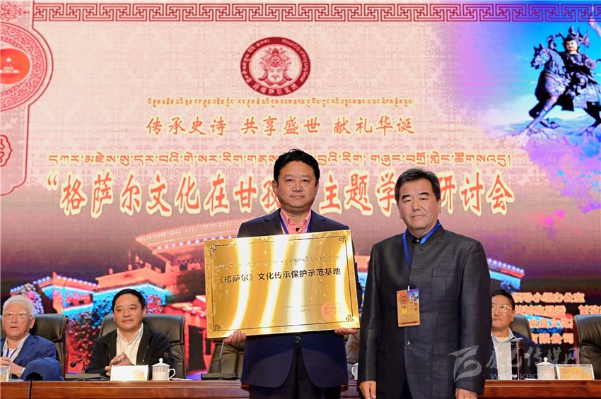 全國(guó)《格薩(斯)爾》工作領(lǐng)導(dǎo)小組辦公室主任諾布旺丹向甘孜縣授牌。