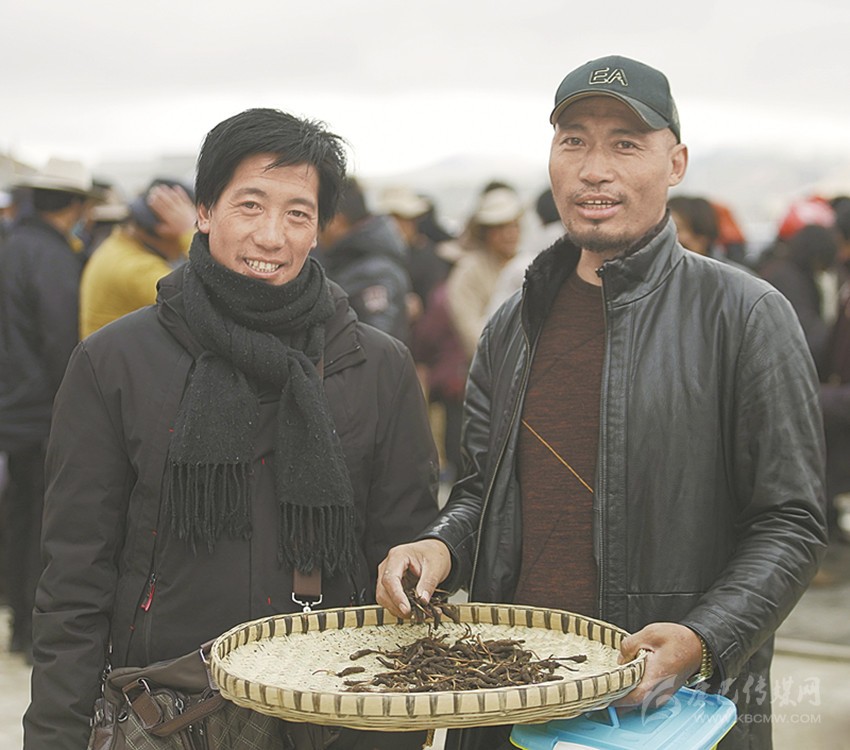 來(lái)自拉波鄉(xiāng)的商人曲珠他,在采集點(diǎn)的臨時(shí)交易點(diǎn)將斯郎單珍一家采集到的蟲(chóng)草盡數(shù)收購(gòu),運(yùn)送至城區(qū)再次交易。5月5日,攝制組跟隨著這些“還沾著泥土的蟲(chóng)草”,來(lái)到攝制組在理塘縣城東新區(qū)蟲(chóng)草交易市場(chǎng),拍攝記錄下2019年“頭草”的交易情況,并捕捉到了藏區(qū)特有的蟲(chóng)草交易“袖筒議價(jià)”場(chǎng)面。