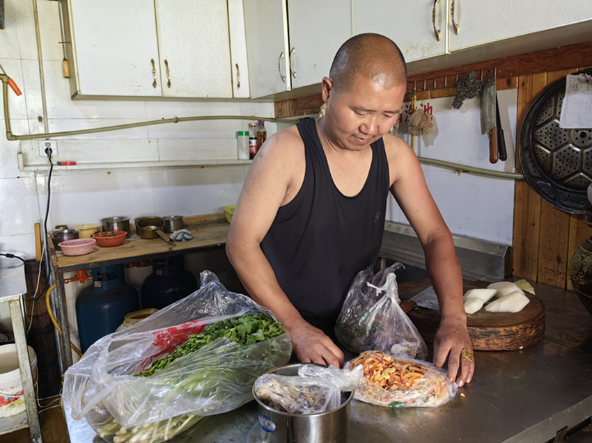 今天下午,先生和我往村尾寺廟方向散步,遠(yuǎn)遠(yuǎn)地看到我們?cè)ミ^(guò)的海子山村。我又想到村里的董秀才。