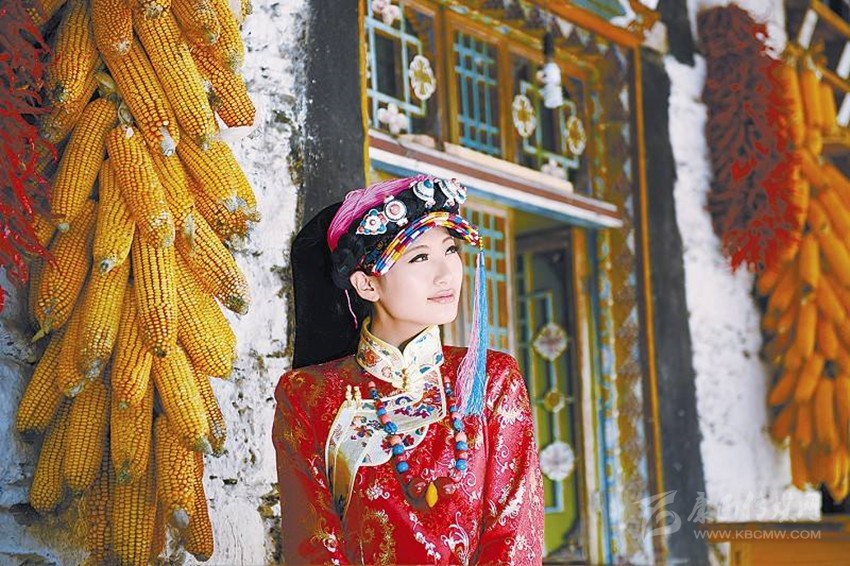 不知什么時候丹巴已被古碉?藏寨?美人谷這個名詞所取代。誠然,丹巴有歷經(jīng)蒼桑歲月仍傲然屹立于荒草萋萋之中的古碉,也有散落在田間地頭的白色藏房,它們用歲月遺留下來的符號無言地訴說著古老的過去。就在這美麗的土地上,綠水青山環(huán)繞中,充滿靈氣的古碉藏寨交相輝映,呈現(xiàn)出一幅天人合一的絕妙畫卷。也許是上天特別垂青于這塊土地吧!丹巴自古以來美女如云,一代代優(yōu)雅端莊,心靈手巧的姑娘,身著自已繡織的衣服,甩動如云的繡帕,舉手投足間自有一番清雅高華的氣質(zhì),盡顯東女國后裔風范。