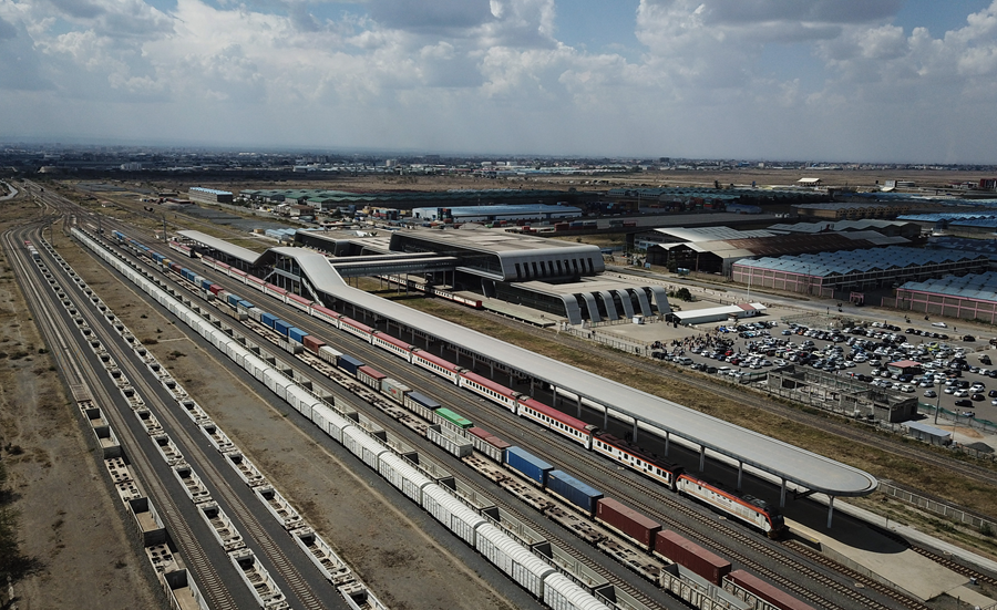 ??這是2023年9月20日在肯尼亞首都內(nèi)羅畢拍攝的蒙內(nèi)鐵路內(nèi)羅畢站(無人機(jī)照片)。新華社記者 韓旭 攝