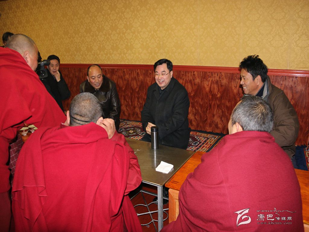在會客室里,胡昌升與大家聊起了前不久安覺寺舉行的元根節(jié),整個活動安全規(guī)范,受到了康定市民和游客的贊揚,他對大家的辛勞“點贊”。隨后,胡昌升與寺管會成員圍坐在電爐旁,專門傾聽大家對“五二三”學習教育活動的意見建議,了解寺廟存在的困難問題。