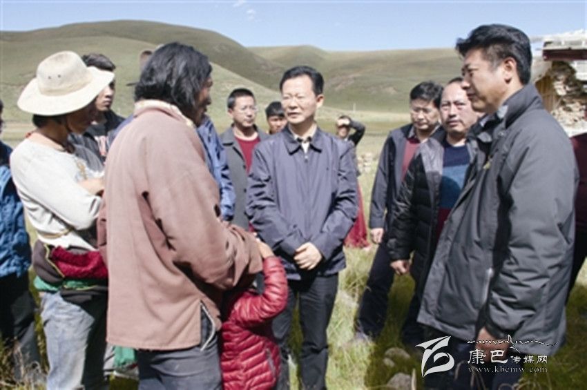 圖為王銘暉在理塘縣向?yàn)?zāi)區(qū)群眾了解受災(zāi)情況。