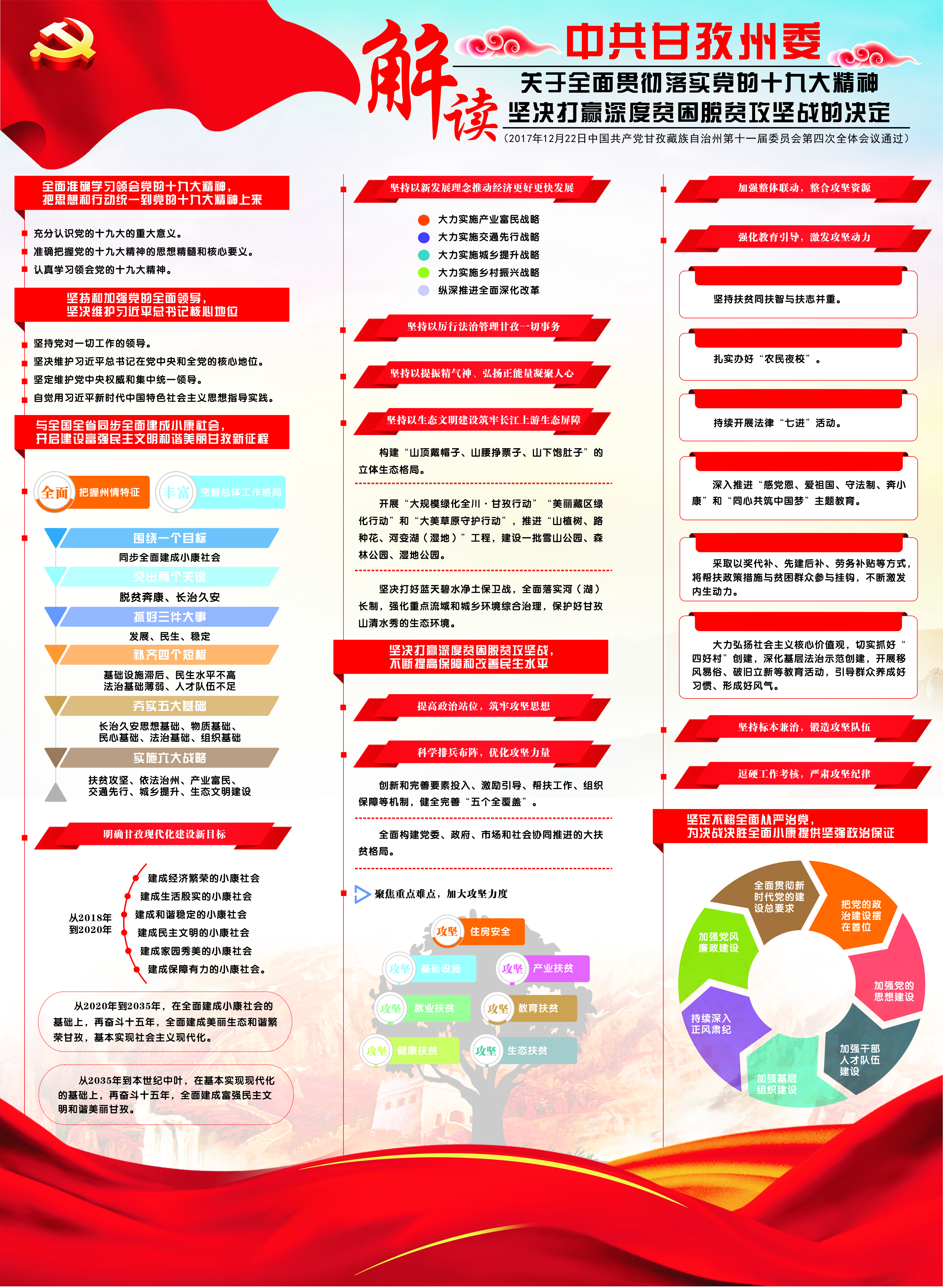 會議指出,實(shí)施鄉(xiāng)村振興戰(zhàn)略,要全面貫徹黨的十九大精神,以習(xí)近平新時代中國特色社會主義思想為指導(dǎo),加強(qiáng)黨對“三農(nóng)”工作的領(lǐng)導(dǎo),堅(jiān)持穩(wěn)中求進(jìn)工作總基調(diào),牢固樹立新發(fā)展理念,落實(shí)高質(zhì)量發(fā)展的要求,統(tǒng)籌推進(jìn)“五位一體”總體布局和協(xié)調(diào)推進(jìn)“四個全面”戰(zhàn)略布局,堅(jiān)持把解決好“三農(nóng)”問題作為全黨工作重中之重,堅(jiān)持農(nóng)業(yè)農(nóng)村優(yōu)先發(fā)展,按照產(chǎn)業(yè)興旺、生態(tài)宜居、鄉(xiāng)風(fēng)文明、治理有效、生活富裕的總要求,建立健全城鄉(xiāng)融合發(fā)展體制機(jī)制和政策體系,統(tǒng)籌推進(jìn)農(nóng)村經(jīng)濟(jì)建設(shè)、政治建設(shè)、文化建設(shè)、社會建設(shè)、生態(tài)文明建設(shè)和黨的建設(shè),加快推進(jìn)鄉(xiāng)村治理體系和治理能力現(xiàn)代化,加快推進(jìn)農(nóng)業(yè)農(nóng)村現(xiàn)代化,走中國特色社會主義鄉(xiāng)村振興道路,讓農(nóng)業(yè)成為有奔頭的產(chǎn)業(yè),讓農(nóng)民成為有吸引力的職業(yè),讓農(nóng)村成為安居樂業(yè)的美麗家園。