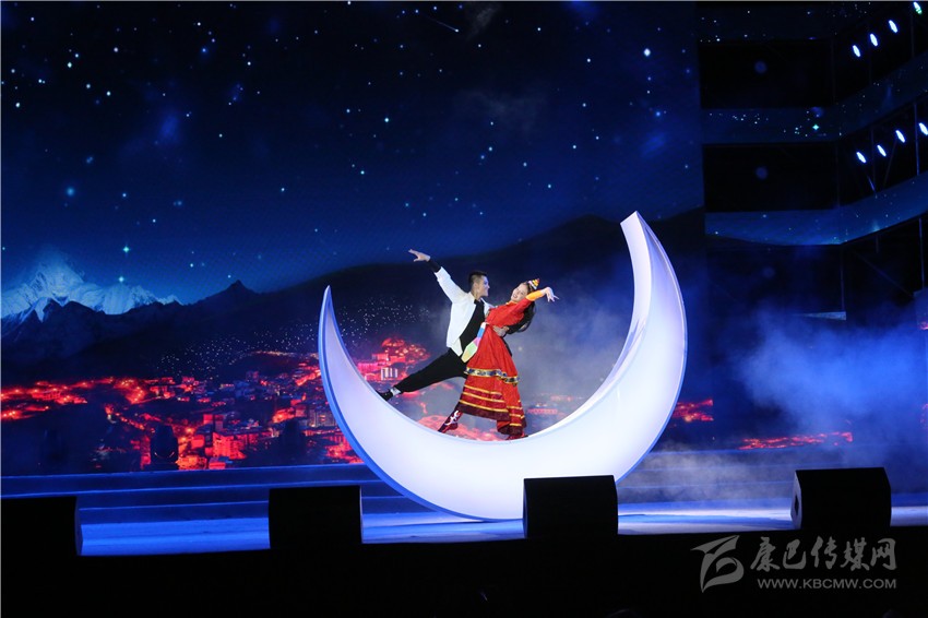 說唱《康定情歌》并配以街舞是本劇目對《康定情歌》演繹形式的大膽創(chuàng)新。演出中,幾名穿著時尚、朝氣蓬勃的青年,用歡快的節(jié)奏、靈活的動作,展現(xiàn)了《康定情歌》的深厚內涵,也宣傳了康定的城市特質。獨具一格的表演讓人耳目一新、深受感染,體育場內歡呼不斷、吶喊震天,觀眾的熱情與演員的激情互相激蕩,久久不絕。