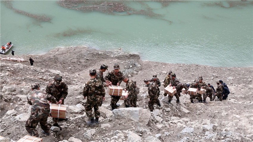 堰塞體最理想的觀測點在滑坡點對面——白玉縣絨蓋鄉(xiāng)的一座山坡上,那里地勢險峻、人跡罕至,只能從最近的則巴村徒步攀登15公里抵達??芰恳恍杏谏钜沟竭_則巴村,稍作休整,待次日天色初明,便開始急行挺進。一路山勢陡峭、荊棘密布,行進極為艱難驚險。4日9時過,寇量等人終于抵達預定觀測點位。9時30分,寇量利用手機將第一組堰塞湖圖像傳送到應急管理部指揮中心。隨后,又用單兵圖傳設備實現了與北京的第一次視頻連線,徹底打破災害核心區(qū)域的“信息孤島”狀態(tài)。