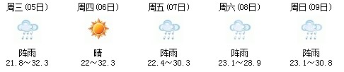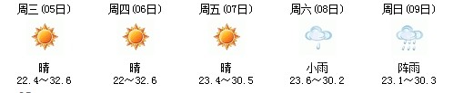 雖然明天太陽有點兇,但7日、8日、9日三天陣雨及時出現(xiàn),日最高氣溫穩(wěn)定在30℃附近。