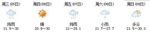 5日開始一直到9日都是多云到晴的天氣,日最高氣溫27℃左右。每天都有陣雨(小雨),考生出行應(yīng)防山地災(zāi)害。