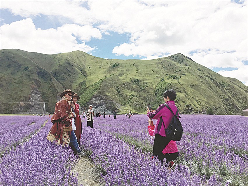 新網(wǎng)紅打卡地——新都橋薰衣草花海吸引著來自全國各地的游客。本網(wǎng)記者 游飛 劉婭靈 攝