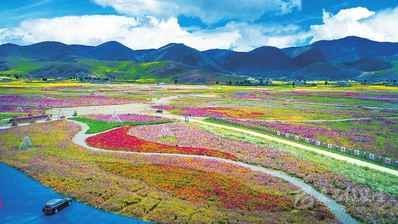 2018年9月,距甘孜州稻城縣城7公里的色拉鄉(xiāng)八美村山谷,1500余畝格?;ㄩ_成壯美“花?!?。而這里以前曾經(jīng)是沙化嚴重的低效益牧場。