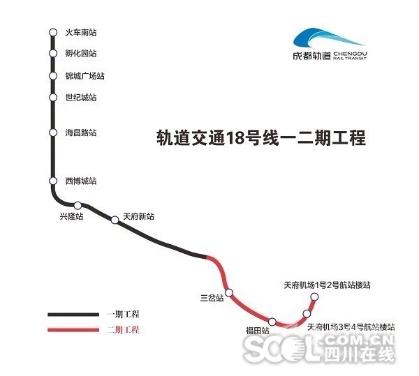 服務于成都市區(qū)與成都天府國際機場之間,北起火車南站,南至天府新機場,線路全長66.8Km,共設(shè)12座車站。(圖據(jù)成都軌道建設(shè)公司)