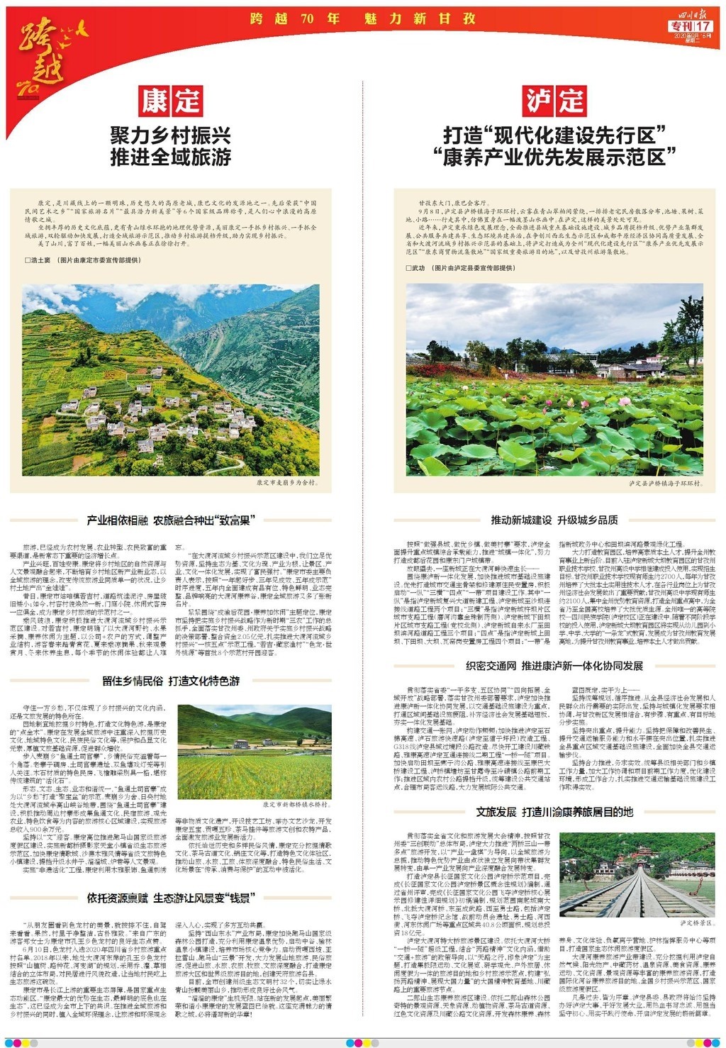 最后四個(gè)整版,聚焦康定、瀘定、雅江、理塘、巴塘、丹巴、新龍、色達(dá)8個(gè)縣(市)的經(jīng)濟(jì)社會(huì)發(fā)展和規(guī)劃,各有特色↓↓↓↓