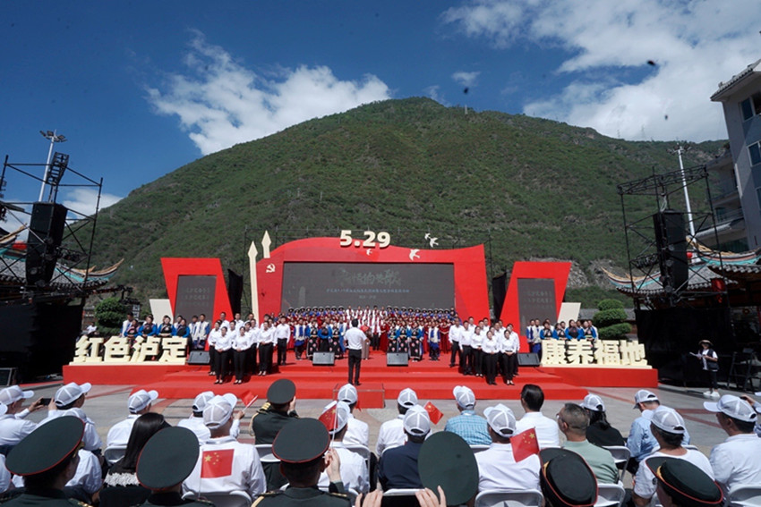 跨越時空“唱和”不朽的世紀贊歌,沉浸式禮贊澎湃的紅色記憶。5月29日,備受期待的瀘定縣“5·29”群眾文化惠民活動暨大型合唱展演在瀘定橋廣場舉行。來自縣級各系統(tǒng)各鄉(xiāng)鎮(zhèn)的14支合唱代表隊1500余名黨員干部、群眾登臺獻唱,唱響紀念紅軍飛奪瀘定橋勝利88周年的新時代“永恒贊歌”,一幅“聲”情告白黨和國家的音樂長卷在瀘定橋邊徐徐鋪展,8萬兒女用堅定的歷史自覺和文化自信抒發(fā)愛黨愛國愛“紅色瀘定·康養(yǎng)福地”的款款深情。