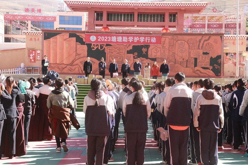 本網(wǎng)訊 浙川山海情,塘塘一家親。5月26日,“2023塘塘助學(xué)護(hù)學(xué)行動(dòng)”捐贈(zèng)儀式在理塘縣第二中學(xué)運(yùn)動(dòng)場(chǎng)(杭州市錢(qián)塘區(qū)援建)舉行。