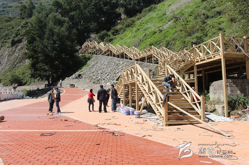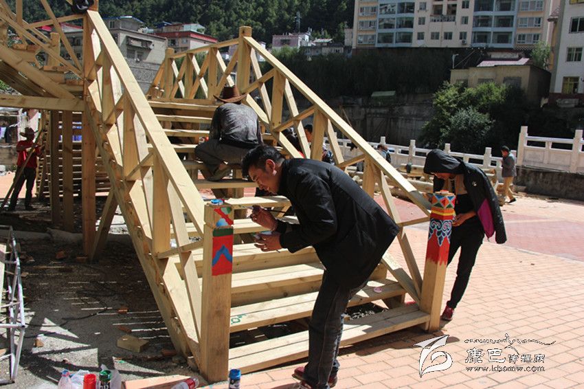 “在深秋艷陽(yáng)的照射下,環(huán)山路木質(zhì)棧道的長(zhǎng)廊上圖案絢麗色調(diào)鮮明。現(xiàn)場(chǎng)有序地堆放著紅色的地磚和白色的木材。藏族畫(huà)匠在專(zhuān)心描摹,工人們的鋸子有節(jié)奏地發(fā)出聲音。在公主橋的施工現(xiàn)場(chǎng),村民們有說(shuō)有笑地忙著平路基,抬石頭、撮泥巴、砌墻。”這是近日筆者在康定文成環(huán)山路施工現(xiàn)場(chǎng)看到的熱鬧場(chǎng)面。