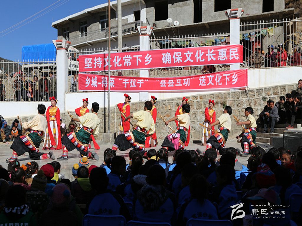 本網(wǎng)訊(何才華 文/圖)歡歌笑語,激情飛揚(yáng)。12月2日,在距離鄉(xiāng)城縣城120公里外的定波鄉(xiāng),一場氣氛熱烈的演出在這里舉行。臺上歌舞飛揚(yáng),臺下父老鄉(xiāng)親用雷動的掌聲回應(yīng)來自得榮縣太陽谷藝術(shù)團(tuán)演員的精彩表演,觀眾與演員互動,這里成為歡樂的海洋。