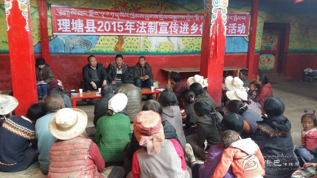為營造“人人學(xué)法、全民守法”的濃厚氛圍,理塘縣依托群眾工作全覆蓋及精準(zhǔn)扶貧工作,通過廣播電視播放公告、城市廣場懸掛標(biāo)語、出租車頂播放宣傳標(biāo)語等方式加大宣傳力度。并于2015年11月從全縣機(jī)關(guān)單位抽調(diào)57名懂雙語、責(zé)任心強(qiáng)、具有一定法學(xué)素養(yǎng)的人員組成6個宣講組,分別在全縣214個行政村及對縣城各鄉(xiāng)搬遷戶進(jìn)行集中宣傳。