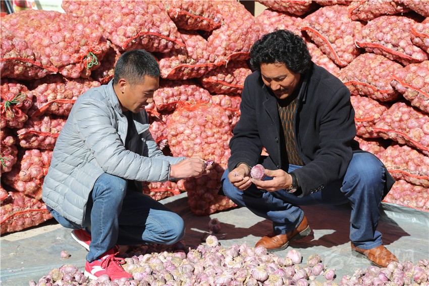 為保障村民的積極性和利益,八埡村積極協(xié)調(diào)村民們成立專業(yè)合作社,并與外地商戶簽訂收購協(xié)議,合作社負責從農(nóng)戶收購大蒜運往協(xié)議收購商家。種植戶擁珍志瑪看著自己收獲的大蒜說:“今年我家種了2畝多,合作社直接到地頭收購,這讓我們省了不少心”。
