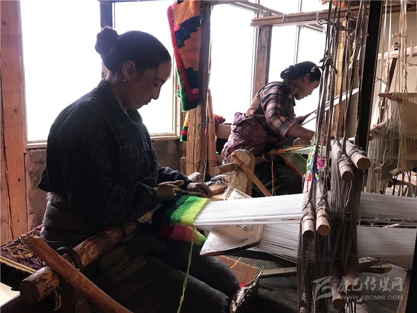 今年5月底開始,在鄉(xiāng)政府的支持引導下,兩村村民重拾手中的針線,共同編織未來幸福生活?,F(xiàn)在,查卡村活動中心里25名“織女”在藏式織布機上忙碌著,“以前和母親學過,但現(xiàn)在什么都方便了,家里面用的編織品都是買的,很久沒有自己動手編織了”,村民群章一邊織著藏毯一邊說著。