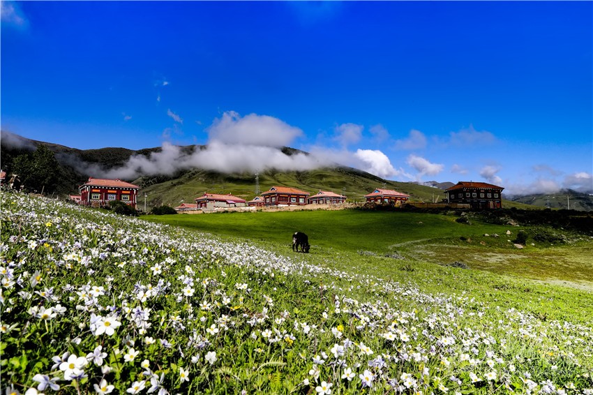 “鄉(xiāng)干部安排我負責管理度假村,我當即承諾,度假村是我們一手培育起來的產(chǎn)業(yè),就像我們的孩子,我們要精心呵護它健康成長。我們修建了特色住宿,完成生態(tài)廁所、停車場等配套基礎設施,拓展騎馬、射箭、土特產(chǎn)銷售等業(yè)務,同時借助幫扶單位樂山職業(yè)技術學院的力量,有信心把度假村打造成一流的牧旅融合休閑旅游目的地,宗塔草原這片七色花海將會為群帶來七彩生活?!贝迕竦莱隽藢Χ燃俅宓钠谕?。