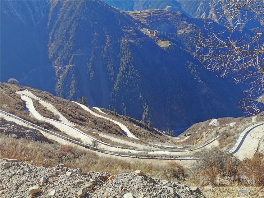“然布村通村路路面寬4.5米、長7227米,總投資1084萬元?!毙慢埧h交通局工程師唐世楊介紹說,“整條路有數(shù)十個急彎道,比山路十八彎還復(fù)雜險峻,可以說是新龍縣最為‘陡、險、 急’的山路?!?/p>