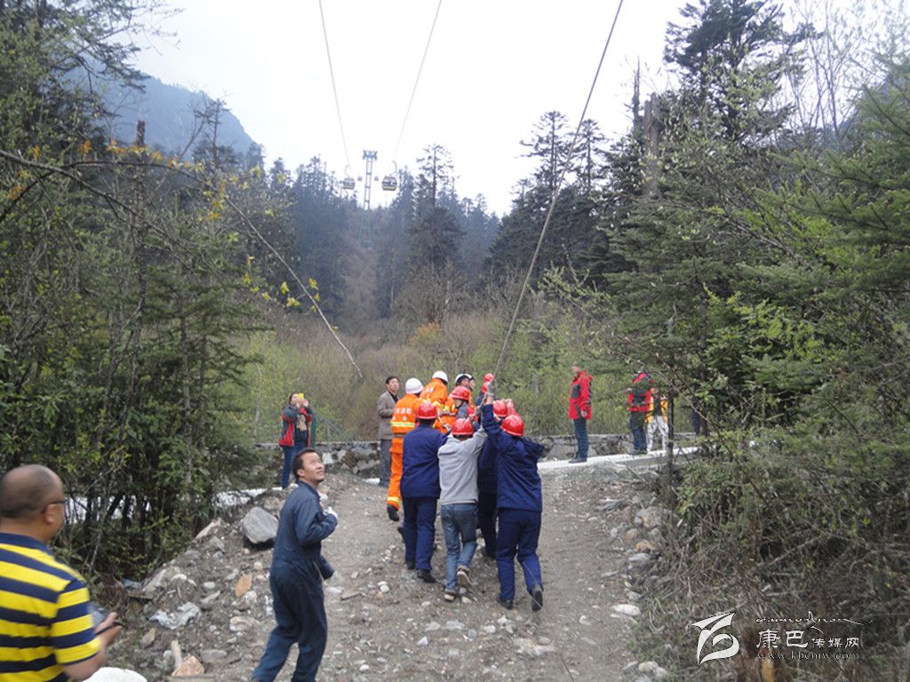 應(yīng)急演練活動(dòng)是模擬索道發(fā)生脫索故障,開展人工救護(hù)應(yīng)急訓(xùn)練。在演練活動(dòng)中,海螺溝客運(yùn)索道出現(xiàn)故障不能運(yùn)轉(zhuǎn),在1C支架和2#支架之間,兩個(gè)車廂共有三名游客滯留空中。海螺溝旅游索道公司立即啟動(dòng)應(yīng)急預(yù)案,救護(hù)總指揮下達(dá)救援指令。后勤組成員對(duì)著車廂喊話,穩(wěn)定游客情緒。救護(hù)小組全體人員,安全、有序、迅速到達(dá)各自崗位,地面工作人員與空中救援人員相互配合,同時(shí)密切注意被困乘客的安全情況,正確操作各項(xiàng)程序,僅用半個(gè)小時(shí)就將被困乘客送到地面,安全完成營(yíng)救。地面輔助救護(hù)人員立即對(duì)被營(yíng)救人員進(jìn)行現(xiàn)場(chǎng)檢查和救治,保障了被營(yíng)救人員的生命安全,應(yīng)急演練活動(dòng)圓滿完成。