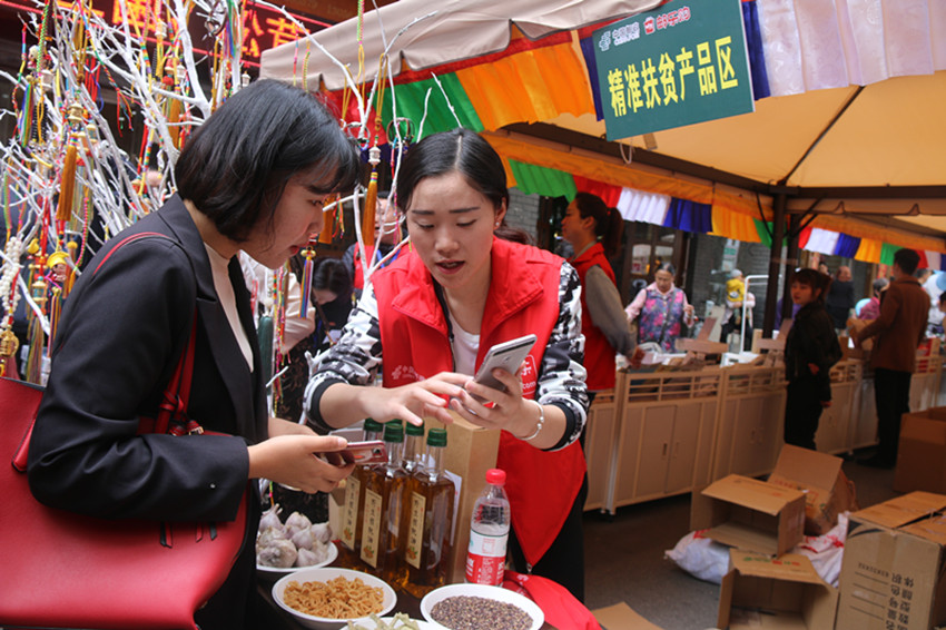電商元素突出,注重電商扶貧是此次展銷活動的另一特點。此次展銷活動采用了“線上線下互動”的模式,既有現(xiàn)場售賣,又有線上體驗;掃碼關(guān)注店鋪微信公眾號,掃碼進(jìn)入網(wǎng)店頁面,微信付費(fèi)享受折扣等,顯示電商思維的營銷手段層出不窮;各參展商家為推廣自家網(wǎng)點開設(shè)的限時低價搶購活動,更引發(fā)數(shù)百名消費(fèi)者爭相參與。而電商扶貧則是此次活動的出發(fā)點之一?;顒硬粌H專門設(shè)立有精準(zhǔn)扶貧產(chǎn)品專區(qū),而且以貧困村農(nóng)牧民專業(yè)合作社為主要參展企業(yè)。所有參展企業(yè)均為免費(fèi)入駐參展,活動主辦方還盡力保障企業(yè)利潤。