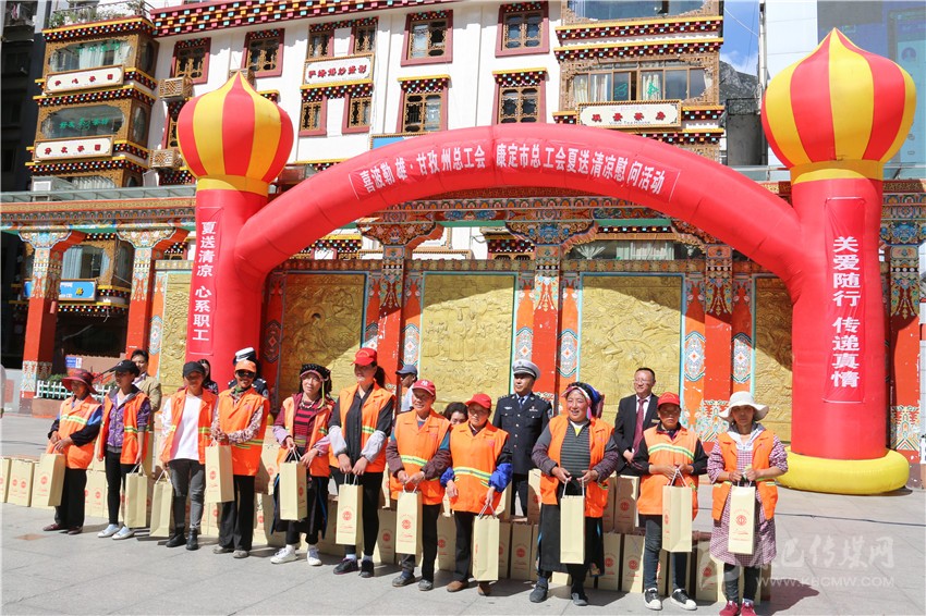 本網(wǎng)訊 9月5日下午,工會(huì)四大品牌活動(dòng)之一“喜波勒雄·夏送清涼”慰問(wèn)活動(dòng)在康定市情歌廣場(chǎng)舉行,州總工會(huì)、康定市總工會(huì)聯(lián)合為環(huán)衛(wèi)工人、值勤民警等一線職工送去清涼禮包共計(jì)490份,并向他們表達(dá)敬意和關(guān)懷。