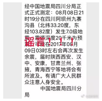 網(wǎng)傳中國地震局四川分局公告不要信!
