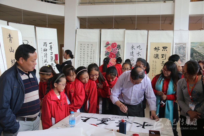 “五老”送書畫進校園。