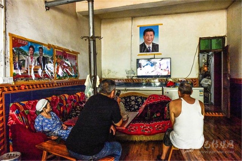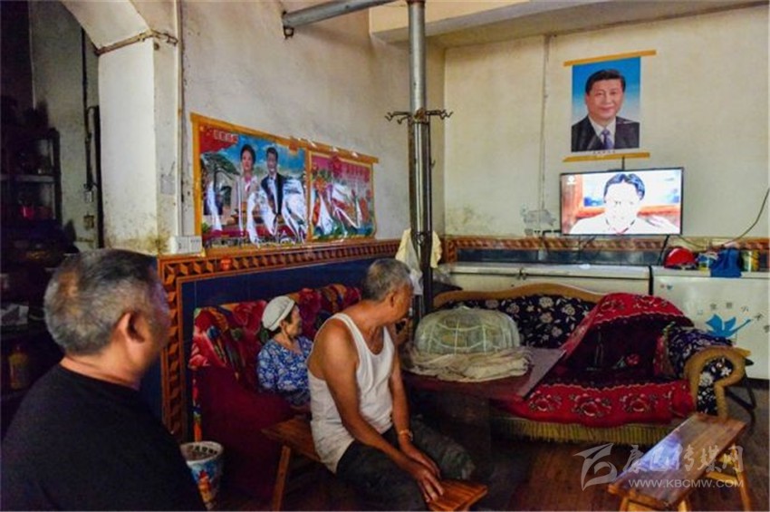 沒(méi)客人時(shí),朱國(guó)富陪81歲的父親和80歲的母親看電視。張可凡攝。