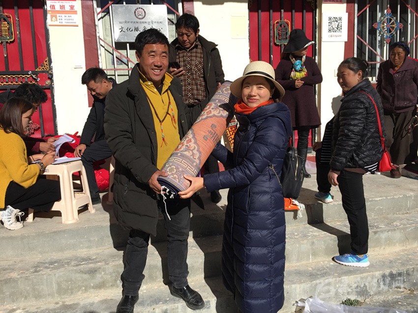 看著即將銷售一空的土豆,蓋玉鄉(xiāng)黨委書記白瑪降稱特意為援藏隊送來潔白的哈達,表達感激之情。