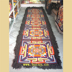 藏毯是植物染色,手工捻線,經(jīng)藝人的精心編織而成。它柔軟、耐用、美觀、大方,又有濃厚的民族特色,對(duì)生活在高寒地區(qū)的人們隔潮御寒、保溫取暖有重要作用。因些是長(zhǎng)期在牧區(qū)生活所不可缺少的用品。它的品種,有地毯、炕毯、坐毯等。它是在藏族傳統(tǒng)藝術(shù)的基礎(chǔ)上,吸收、融合了漢族、印度和尼泊爾宗教藝人精華,形成具有自己獨(dú)特的藏族藝術(shù)風(fēng)格的工藝美術(shù)品。 傳統(tǒng)藏毯的藝術(shù)風(fēng)格,帶有濃厚的宗教色彩,如佛八寶、暗八仙、國(guó)王七寶等。佛八寶即法輪、法螺、寶傘、寶蓋、荷花、寶罐、雙魚(yú)、盤(pán)花;暗八仙屬漢道教文化即寶劍、寶葫蘆、漁鼓、陰陽(yáng)板、仙笛、寶扇、花籃、荷花;國(guó) 王七寶也稱怵寶,屬印度佛教文化,即方勝、連環(huán)錢(qián)、犀角、令牌、象牙、珊瑚、珠寶。還有漢文化的琴棋書(shū)畫(huà)和梅蘭竹菊等。這些內(nèi)容既展示了人們的勤勞智慧和精神力量,也體現(xiàn)出人們對(duì)美好未來(lái)的期待、愿望和幻想。藏毯的表現(xiàn)形式以傳統(tǒng)式為主,還有自由式、龍鳳式及隨品種形式不同的構(gòu)圖形式。色彩表現(xiàn)方面尤為豐富,顏色艷麗、純度高、對(duì)比強(qiáng),色彩構(gòu)圖穿插靈活,與藏族建筑彩畫(huà)的裝飾風(fēng)格一脈相承。